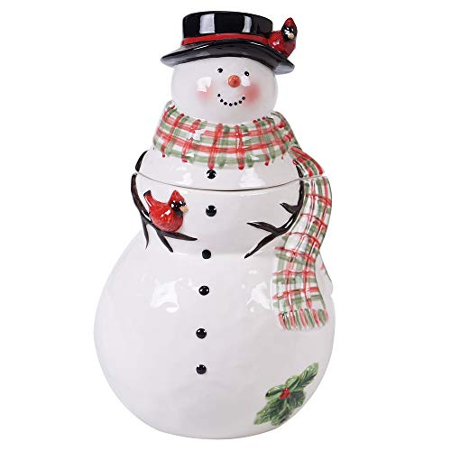 - Includes: watercolor Snowman 3-D cookie jar, 70 oz.